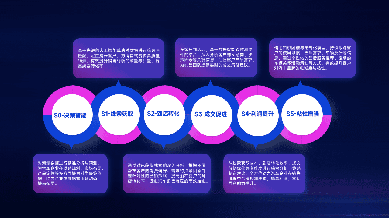 通过拓宽潜在客户来源、、、、优化线索分配并提高到店转化率,,,以增强销售效率。。同时,,,,利用线索数据不断优化分析模型,,,,有效提升转化率,,扩大营销影响力。。。。